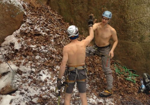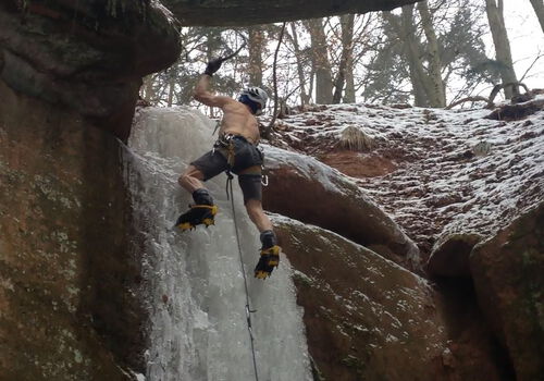 Nachdem uns der Geh-Punkt zur Cold-Water-Challenge nominiert hatte kam Mike auf die Idee, wie man "Cold Water" noch steigern kann. Am letzten Sonntag hat er in spektakulärer Manier den Eis-Wasserfall im Schnittlinger Loch geklettert und damit die Ehre des Vereins gerettet. Großes Lob für die sportliche Leistung und Danke an Mike.