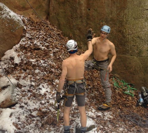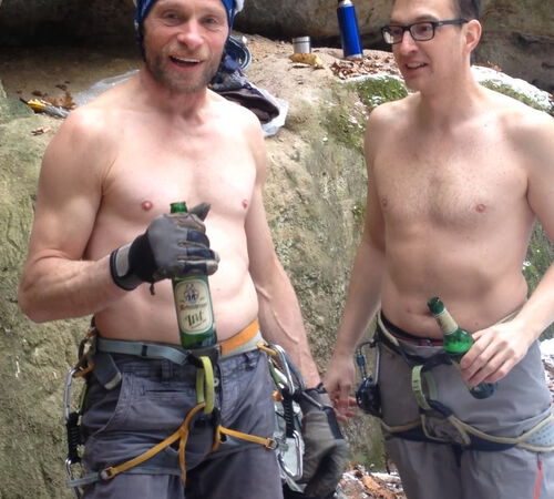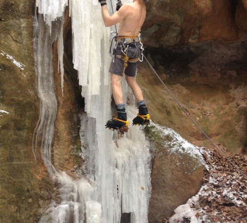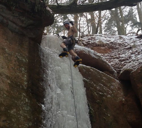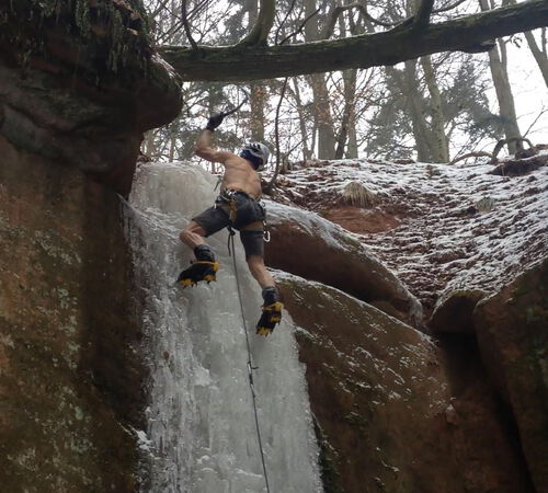 Nachdem uns der Geh-Punkt zur Cold-Water-Challenge nominiert hatte kam Mike auf die Idee, wie man "Cold Water" noch steigern kann. Am letzten Sonntag hat er in spektakulärer Manier den Eis-Wasserfall im Schnittlinger Loch geklettert und damit die Ehre des Vereins gerettet. Großes Lob für die sportliche Leistung und Danke an Mike.