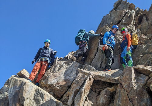 Schon eine Woche nach der Sommerfahrt sollte es für einen Teil der Jugend auf den höchsten Berg der Ötztaler Alpen gehen – die 3768 m hohe Wildspitze. Los ging es für vier Teilnehmende schon am Freitagabend an der Talstation des Gletscherexpress in Mittelberg im Pitztal. Von dieser wurde zur Riffelseehütte aufgestiegen und dort nach einem leckeren Abendessen übernachtet. Am nächsten Morgen ging es dann auf dem Offenbacher Höhenweg vom Riffelsee, um den es zu dieser Tageszeit vor der ersten Bergfahrt der Riffelseebahn noch ganz ruhig ist, durch das schöne Riffelbachtal zu den Überresten des Riffelferners und von dort auf den 3228 m hohen Wurmtalerkopf. Auf dem Gipfel konnte aus der Ferne schon mal der geplante Weg für den nächsten Tag betrachtet werden, bevor man sich auf den Abstieg zum Taschachhaus begab und dort auf den Rest der nun neunköpfigen Gruppe traf. Hier wurde auch optimales Gelände vorgefunden, um zwischen Kuchen und Abendessen die Techniken der Spaltenbergung aufzufrischen. Am Sonntag war dann früh aufstehen angesagt, um sich zeitig im Schein der Stirnlampen zum Taschachferner aufmachen zu können. Auf dem größtenteils aperen Gletscher ging es in zwei Seilschaften bis zum felsigen Gipfelgrat, auf dem die Höhe für einige doch deutlich zu spüren war. Am Gipfel angekommen, wurden alle zusammen mit einem herrlichen 360° Bergpanorama bei bestem Wetter belohnt. Nach einer Stärkung ging es dann zurück auf den langen Rückweg über den Taschachferner und das Mittelbergjoch auf den Mittelbergferner und von dort zur Bergstation des Gletscherexpress, mit dem blasenschonend der Sta