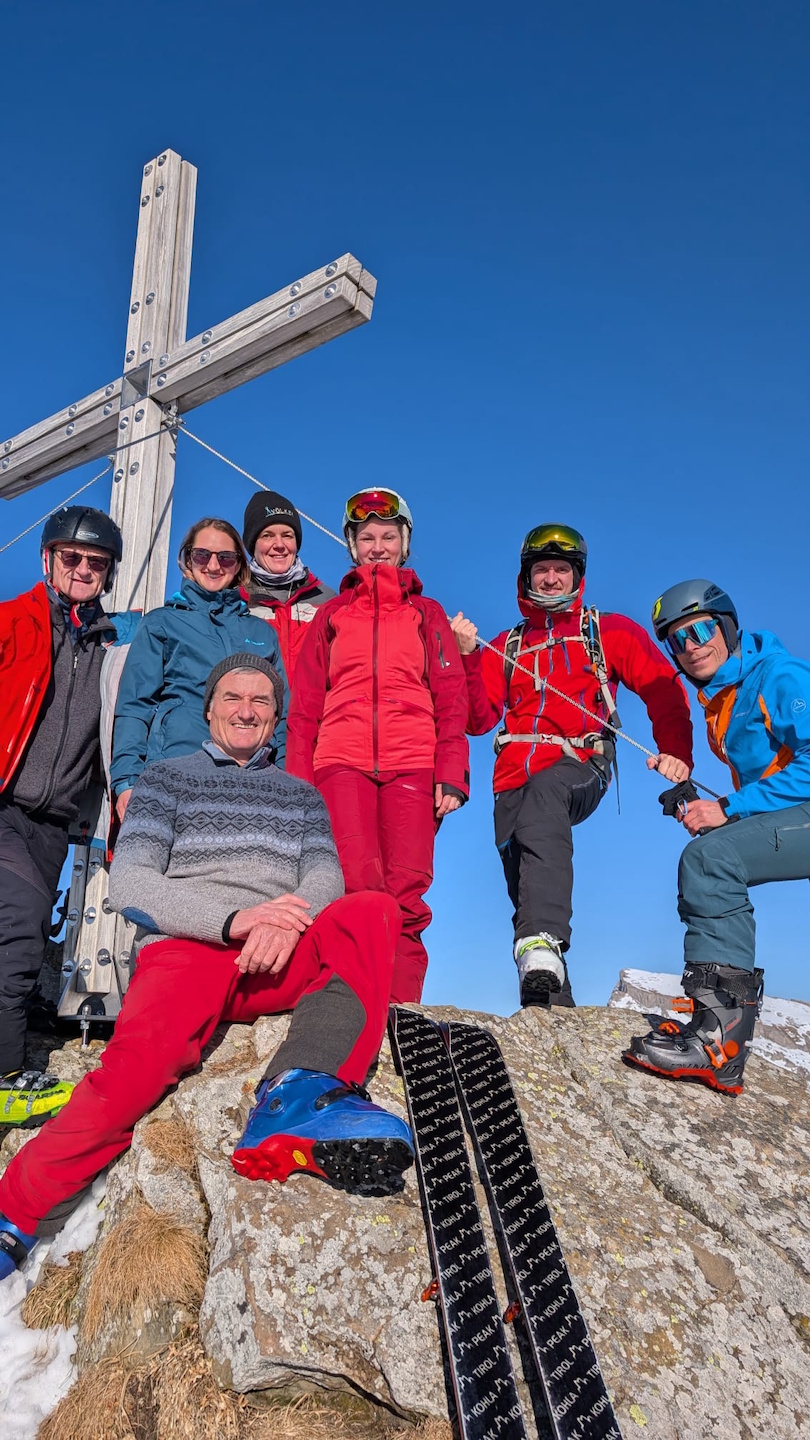 Zurück an den Autos waren wir froh, dass alle unbeschadet angekommen waren und wir einen rundum gelungenen gemeinsamen Tourentag erleben durften. Ein besonderer Dank gilt Wolfgang, der uns trotz der aktuell schwierigen Schneesituation mit viel Umsicht sicher auf einen schönen Gipfel geführt hat.