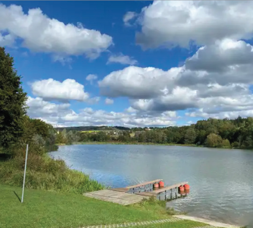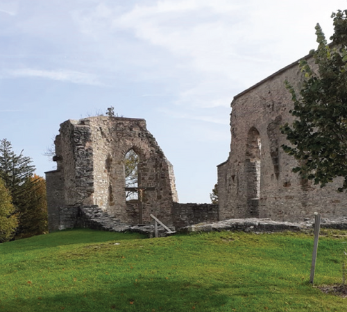Über den Hohlweg wandern wir zur Katharinenkapelle und über den Rundwanderweg zum See.