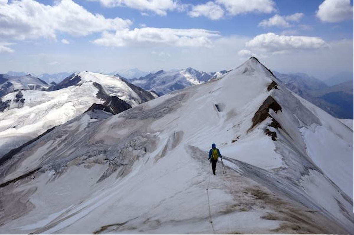 Anspruchsvolle Hochtour in kombiniertem Gelände. Teils luftige Grat- und Blockkletterei im I – II Grad (je nach Gipfelziel), die Trittsicherheit und Schwindelfreiheit erfordert. Eispassagen über 30° Steilheit!