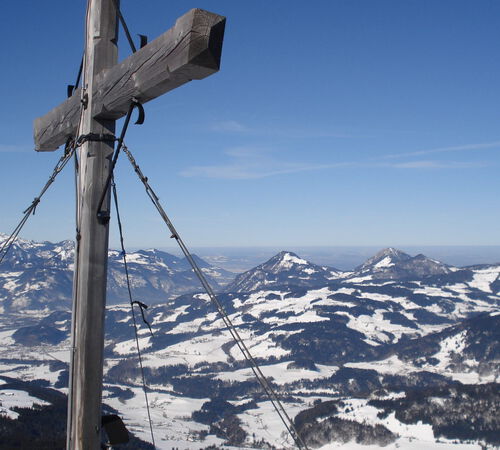 Mittelschwere Schneeschuhtour (ca. 900 Hm) auf einen herrlichen Aussichtsgipfel mit Blick ins Kaisergebirge und zu den Chiemgauer Alpen.
