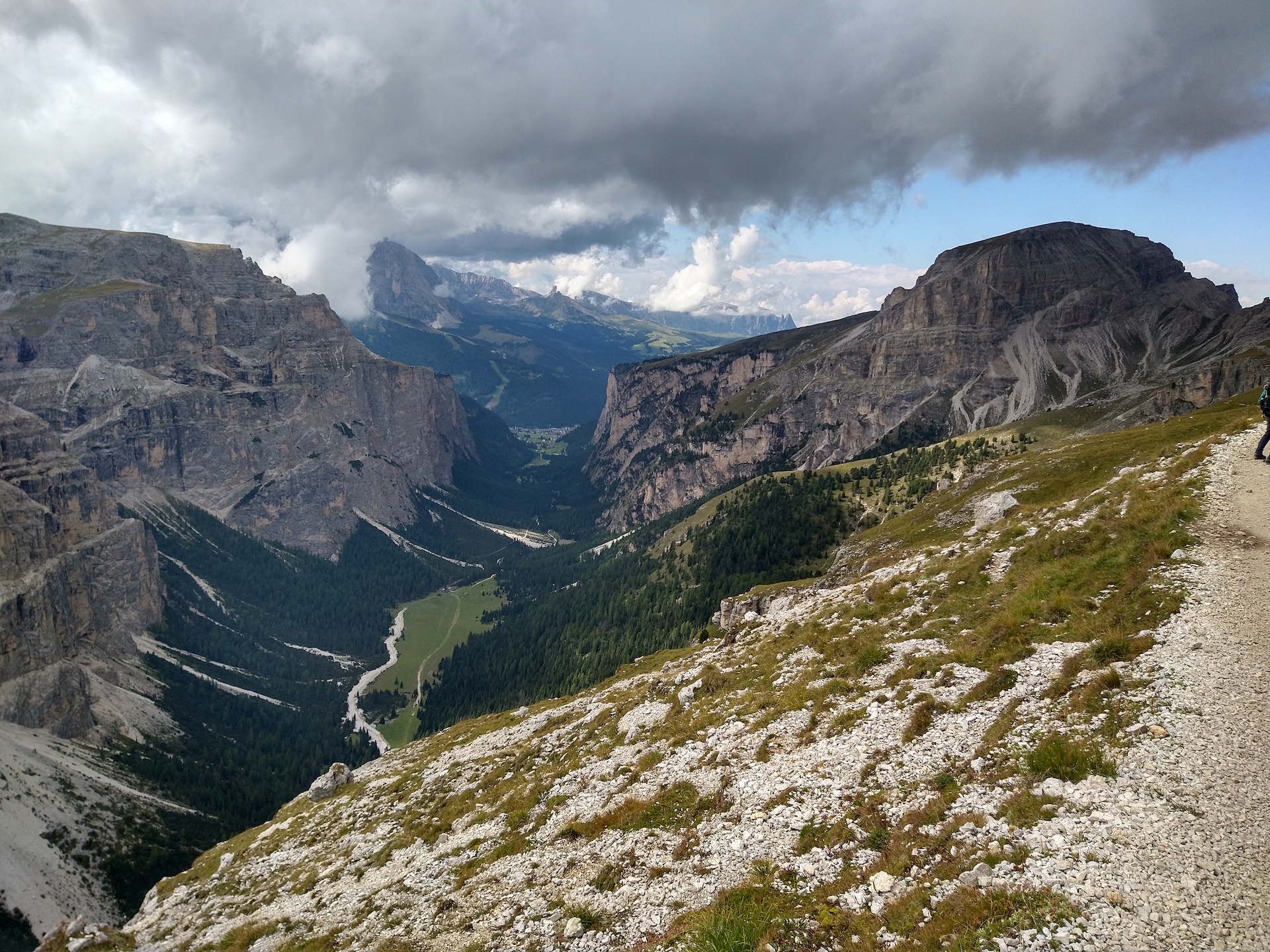 Blick zurück zur Puez - Geislergruppe mit den Cir-Spitzen