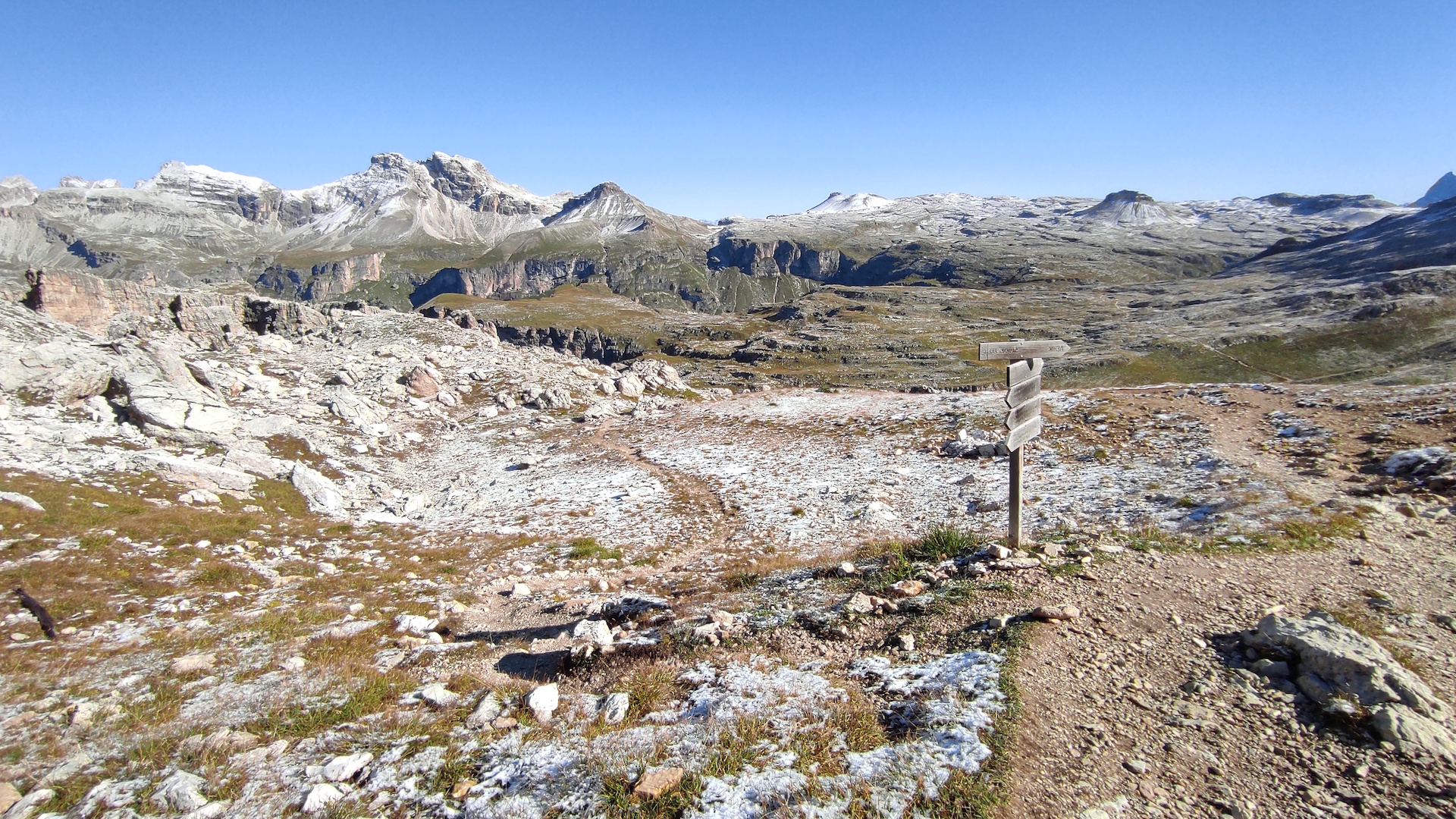 Am Crespeinajoch mit Blick zum Schlern und Ortler