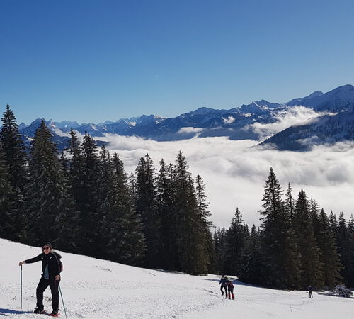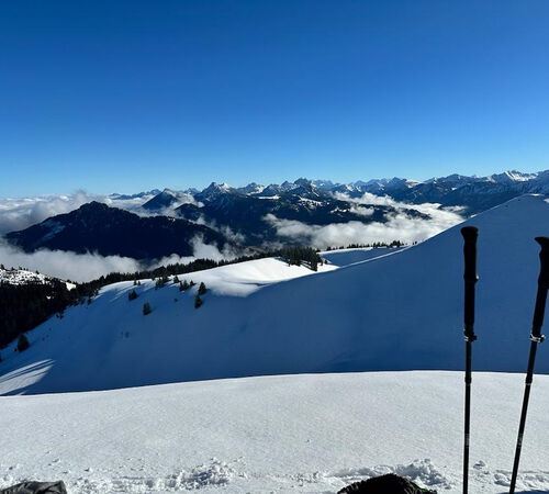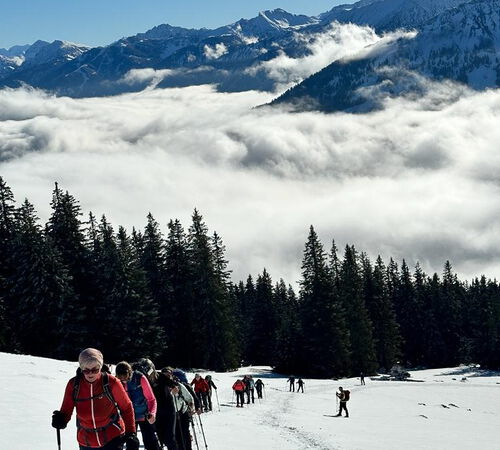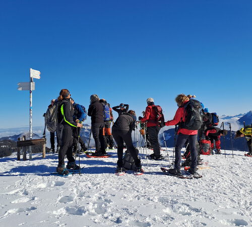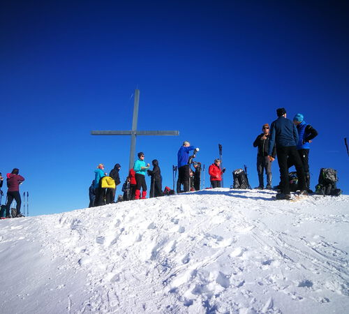 Positiv überrascht hat uns der große Zuspruch, den die Tour gefunden hat. Mit insgesamt 22 Teilnehmern haben wir den Gipfel bestiegen. Davon sind einige zum ersten Mal auf Schneeschuhen gestanden. Für Jeden und Jede ein Erlebnis, an das man sich gerne erinnert.