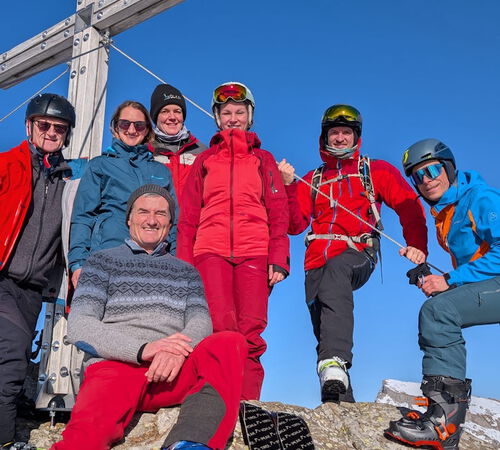 Zurück an den Autos waren wir froh, dass alle unbeschadet angekommen waren und wir einen rundum gelungenen gemeinsamen Tourentag erleben durften. Ein besonderer Dank gilt Wolfgang, der uns trotz der aktuell schwierigen Schneesituation mit viel Umsicht sicher auf einen schönen Gipfel geführt hat.