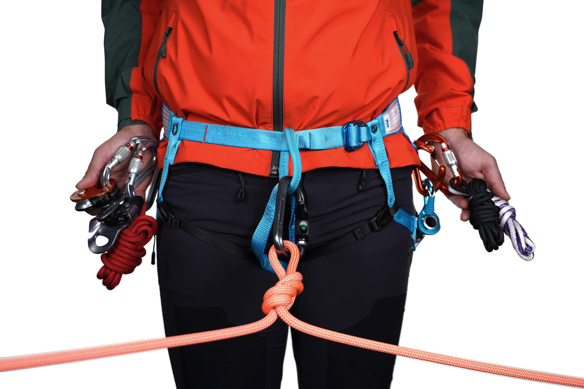 Hüftgurt, Bandschlingen, Reepschnüre (armlang und beinlang), 3-Wege-Karabiner, 2 Schraubkarabiner, Klemmgerät (z.B. Micro Traxion) oder 2 baugleiche Karabiner, warme Bekleidung, Handschuhe, festes Schuhwerk